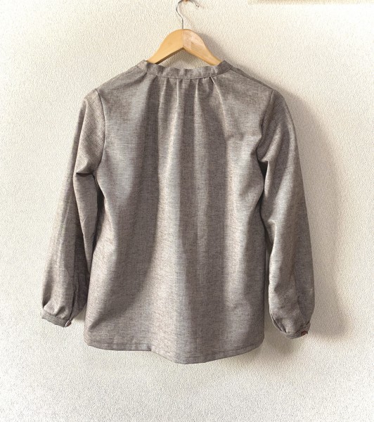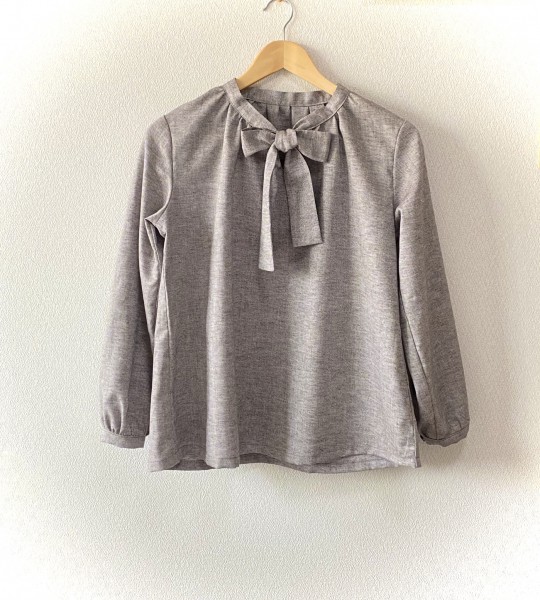 | 市販の型紙を使って、ヘンリーブラウスのボウタイタイプを作りました。ホワイト×ブラウンの綿混シャンブレー生地ですが、写真ではうまく色味が出せませんでした。 以前、半袖タイプを作ったので、ギャザーの寄せ方や袖の開き、カフス付けなど、少し慣れてきたかなあ?と思います。 |