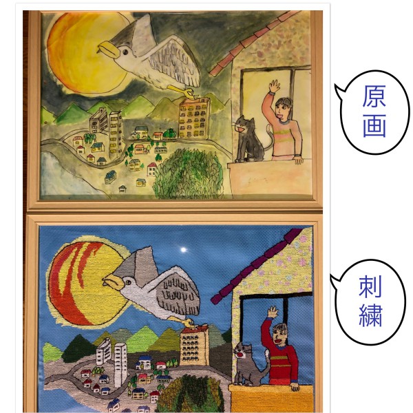 子供が小学生の頃描いた読書感想画を刺繍してみました。