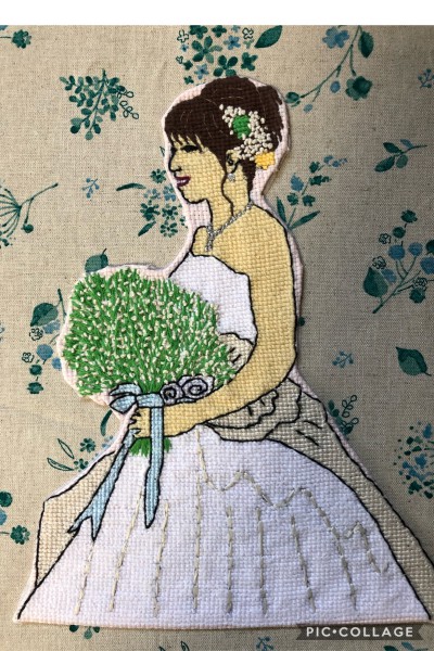息子のお嫁ちゃんの花嫁姿を刺繍してみました。