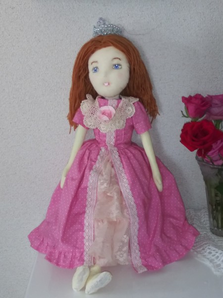 人形のドレスに苦心、 やはり豪華でないと似合わないような?