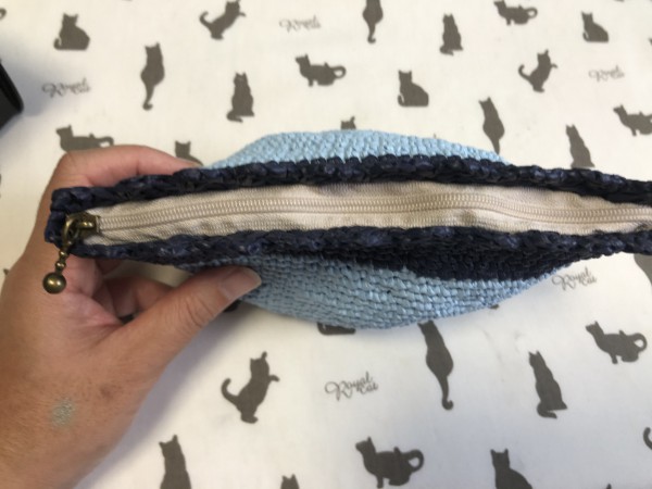 そして、ファスナー付難しい。ファスナー、コットンラフィアで縫い付けてます。