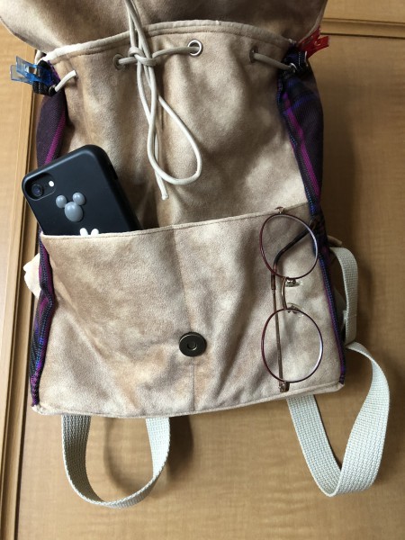 フタ部分めくるとポケット2つ分でスマホなど入ります