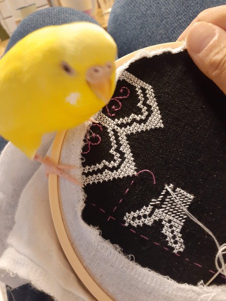 初めて黒い生地にクロスステッチしたんですが、生地目がわかりにくい(>_<)