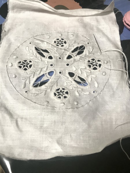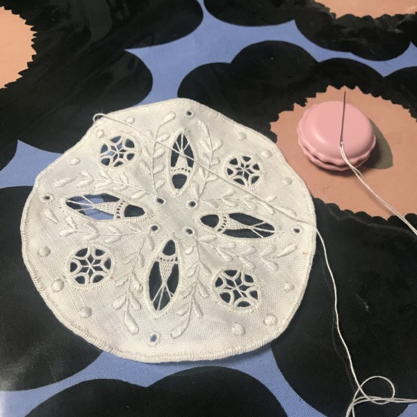 中の部分を刺し終えて周りのはしごかがりとリックラックにこれからはいりまふ