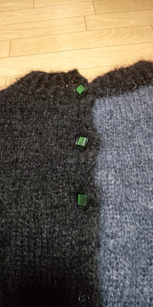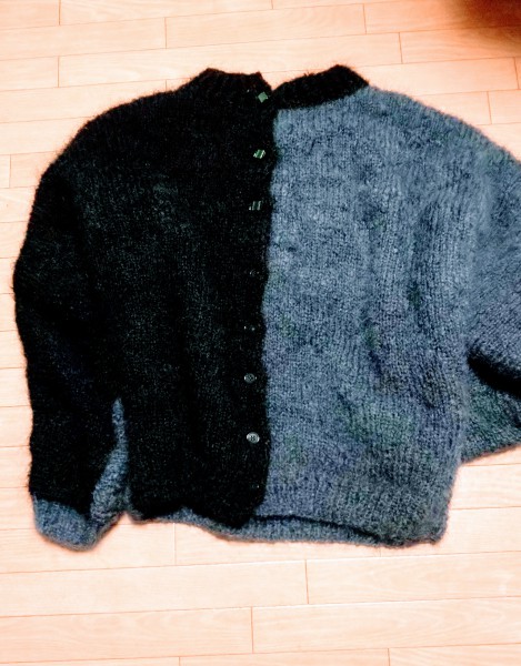 手持ちの毛糸を使いたく、同じ種類の黒とグレーの毛糸でアシンメトリーな色使いにしてみました。
