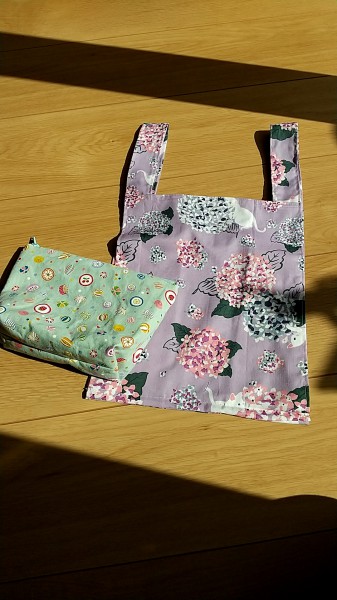 友達のお母さんに紫陽花柄のエコバックと飴模様のポーチ和柄にしてみました。