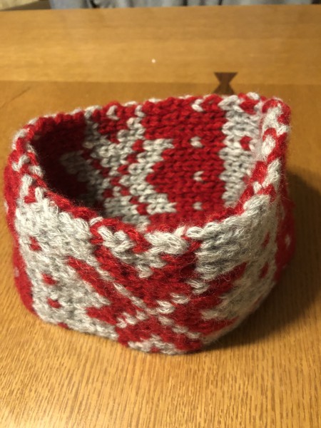 リバーシブルなので、暖かく両面使える。苦労した点は使う後の太さとデザインの入れ方。