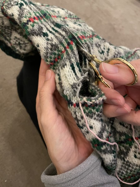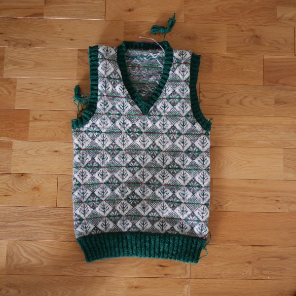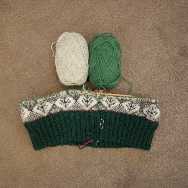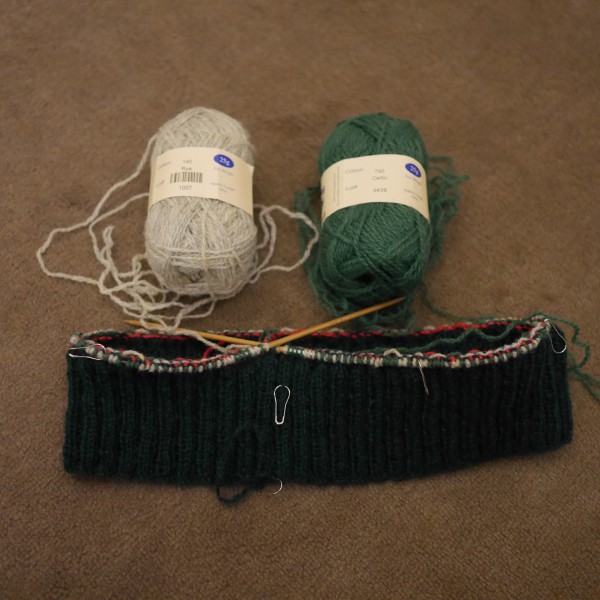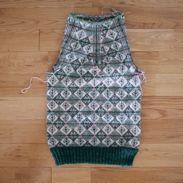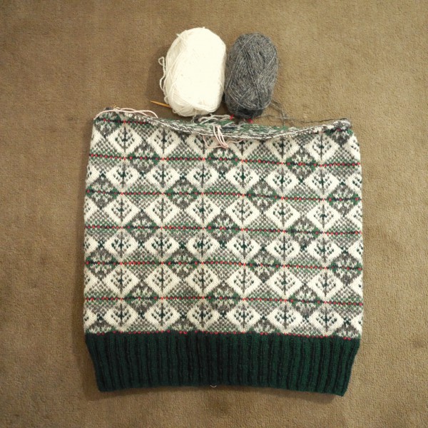 襟用に針を2号に替えたときにここまで4号で編んでいた事に気付きました…。(3号で編んでいたつもりだった。)