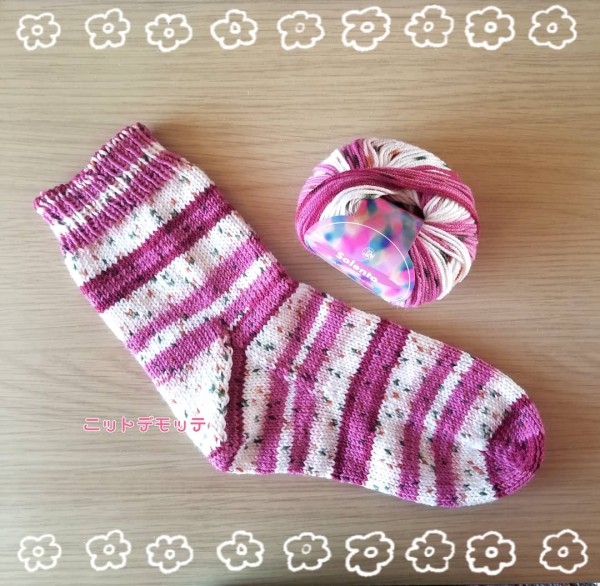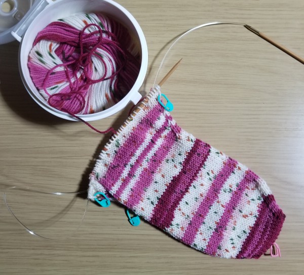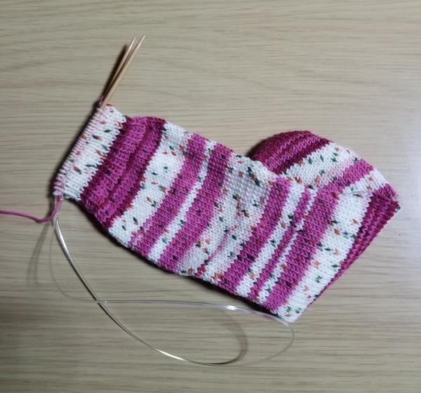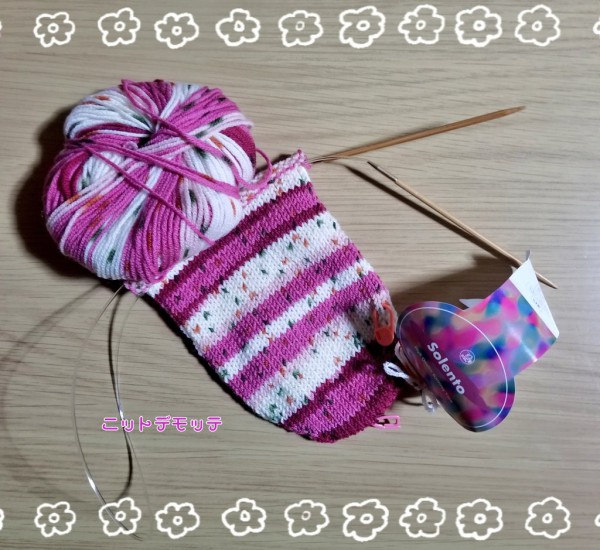 つま先から作り目をしてマジックループで輪に編み始めました。