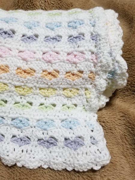 ハート型がポイントのおくるみ。