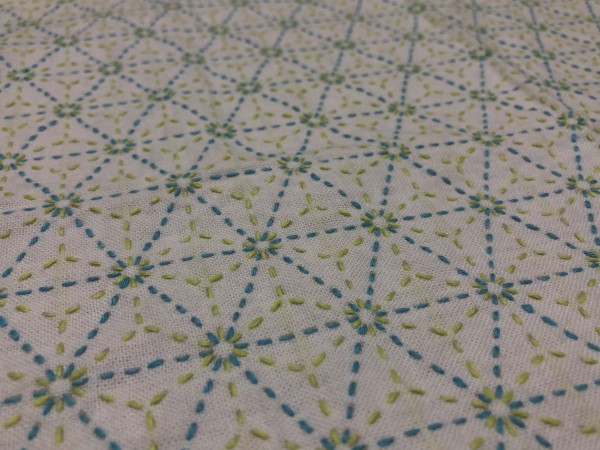 古典的な柄の「麻の葉」を、北欧っぽい色で刺したらどんな感じかなと思って作ってみました。