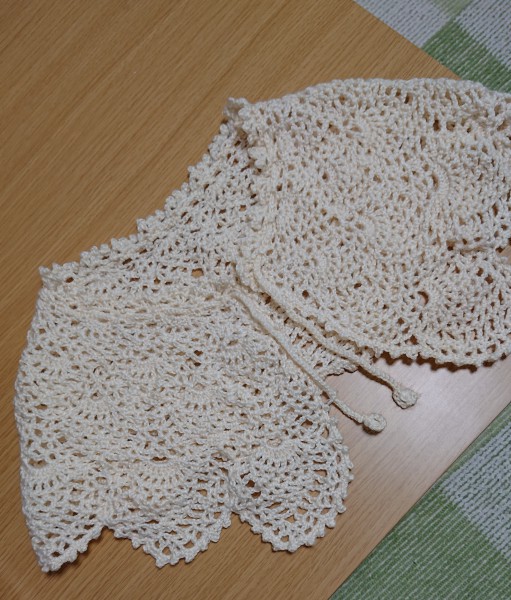 もうひとつは 同じ色の毛糸が他の色の毛糸でくさり編みしたものを同じように1周通してちょうど良いところまで絞り胸のあたりでリボン結びをするのはいかがでしょうか?