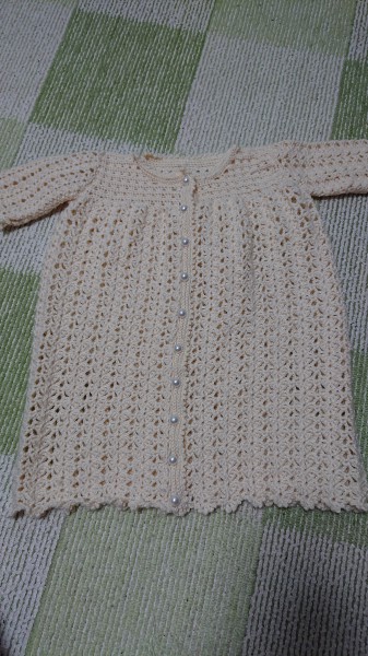 | 新生児~12ヶ月の赤ちゃん用のベビードレスです。本を見ながら編みました。 | |