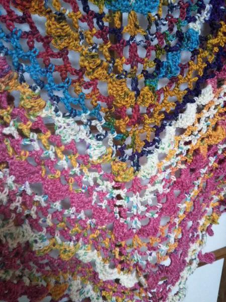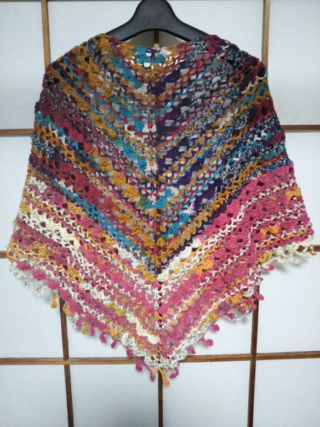 二種類の段染め毛糸を使ってにぎやかな雰囲気になりました。