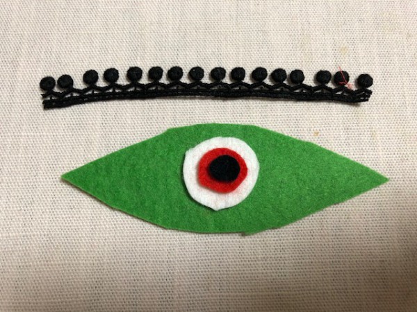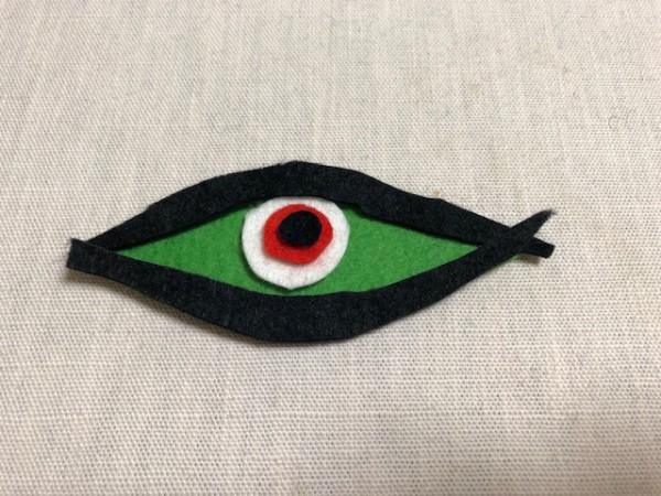 ミロの絵にインスパイアされて、違うデザインの目玉ブローチを作りました。縁のフェルトの切り方でニュアンスが出せます。