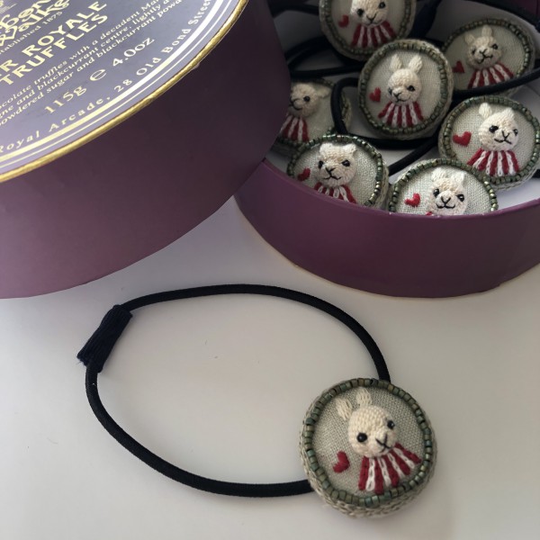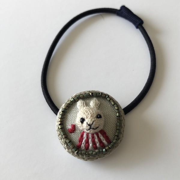 うさぎの立体刺繍の髪ゴム