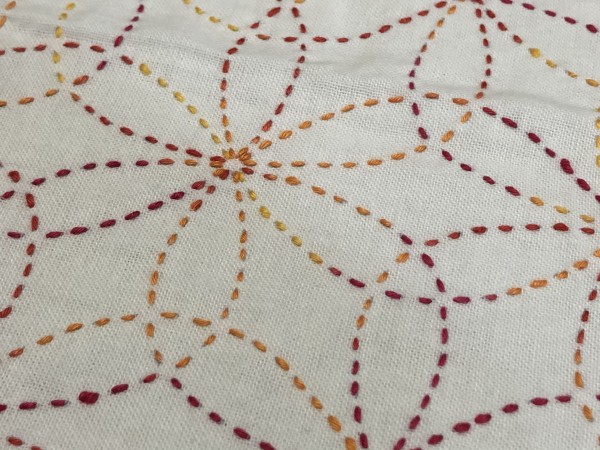 オリムパスの「輪違麻の葉」ふきん+ホビーラホビーレのぼかし糸を使用。3時間半ほどで完成。