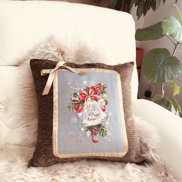 | クリスマスベルのデザインです。 クッションカバーに仕立てました。 |