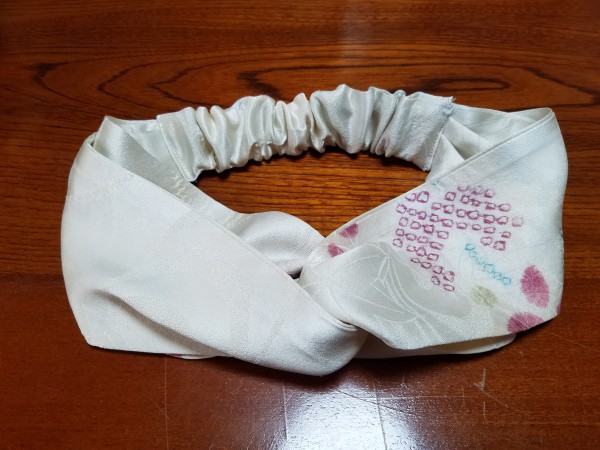 絞り模様の絹の白い着物からのリメイク。