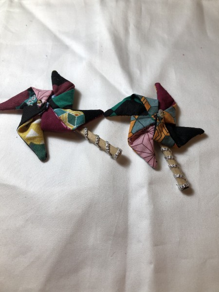 男の子用 吊るし飾り 左側 矢籠 右側 風車2個 実は左側が失敗作ですが、形になったので、載せました。