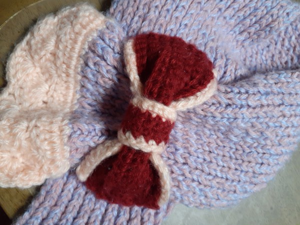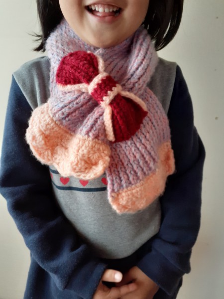 この間おもちゃの織り機で作ったマフラーが短かったのでこうしてみようかな…