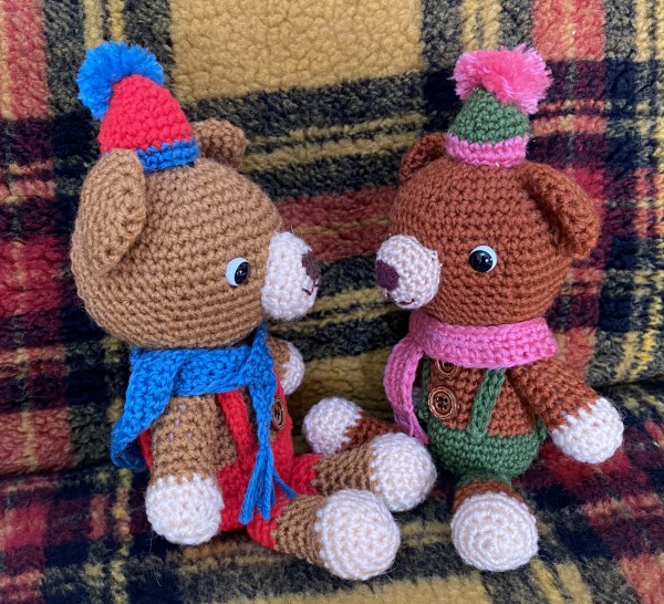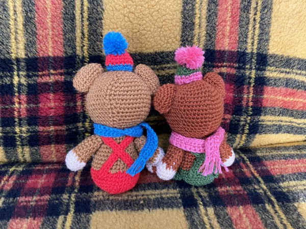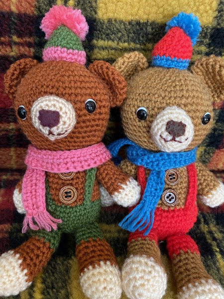マフラーと帽子の冬くまちゃんです。仲良し兄弟 色違い。