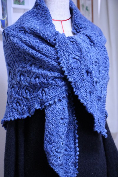 | 北欧ノルウェーの編み物マガジン"Laine issue7"より、 CALLA shawlを編んでいます。 マグノリアのようなお花が、 たくさん咲いているかわいいショールです。 |