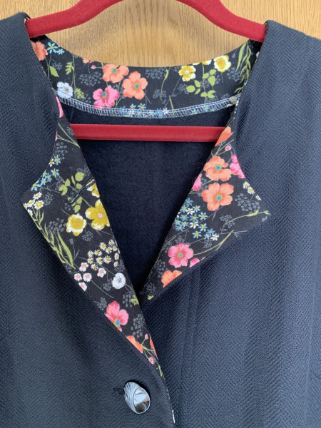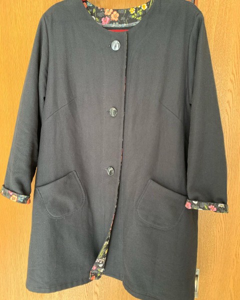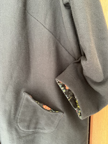 真っ黒なのは嫌だったので、見返し・袖口・ポケット口には別布を使用
