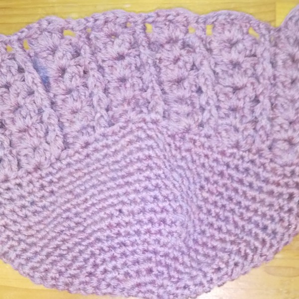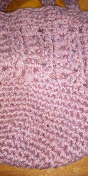 手編みのバックを二本どりで編みました。