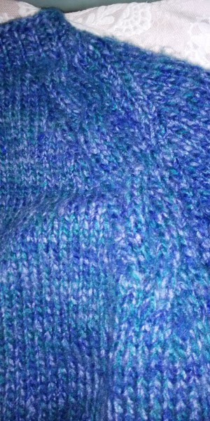 昨年から編み始めて挫折していたセーターが完成しました。サイズを合わせるために何度か編み直しました。肩のあたりに縄模様が入っています。