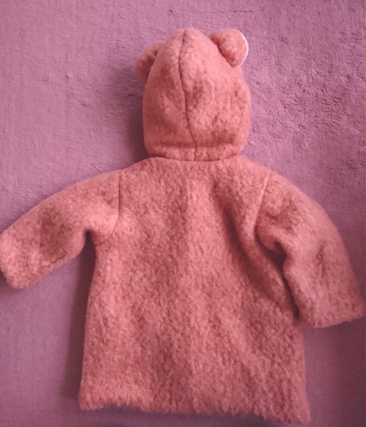 ウール混の表地にマイクロファーの裏地を付けてどんでんで縫いました。フードに耳を付けてみました。