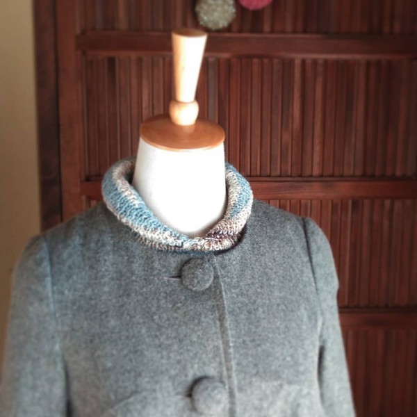 今度はシャツの台襟のようにゴム編みを1センチ付けました。がんばって、台襟。