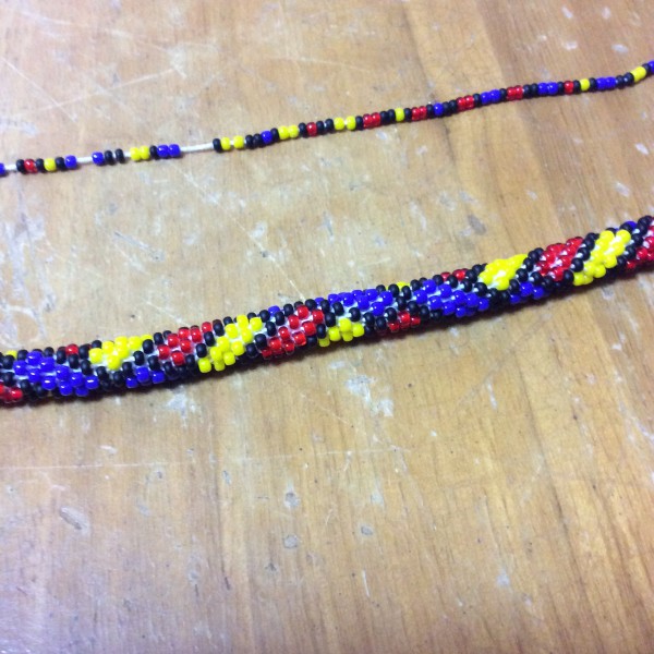 ブレスレットにするために合計で800個に近い数になるまでビーズを繰り返し通すんだけど、