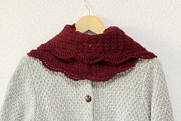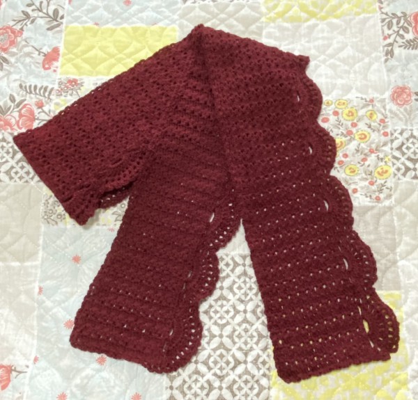 かぎ針編みでマフラーを編みました。編み物は久しぶりだったので肩が凝りました(⌒-⌒; )