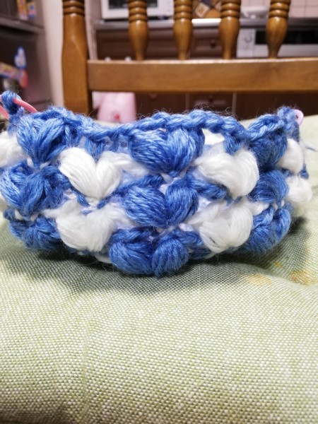 底は9段目まで。青と白の混ざり具合がかわいい。このままポーチにしてもいいかも。そんな気持ちを抑えつつ。