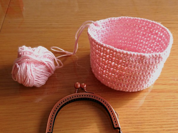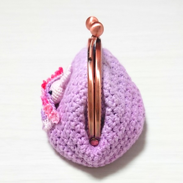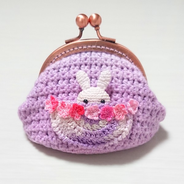 | 小物入れとして使うがま口を作りました。 薄いピンクのコットンの糸で編んで染めました。青みがかったピンクにしようとおもいましたが、青を入れすぎて藤色になってしまいました。写真が上手く取れなかったのですが、実際はもっとくすんだ色です。 ポケットを付けてウサギさんを入れました。持ち歩かず置いておくつもりなのでウサギは止め付けていません。 内布がきれいに付きませんでした。口金がまだあるのでまた練習します。 |