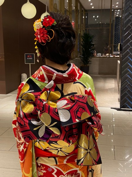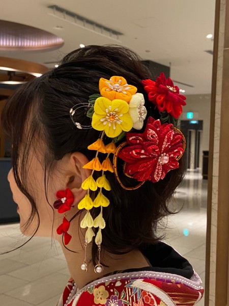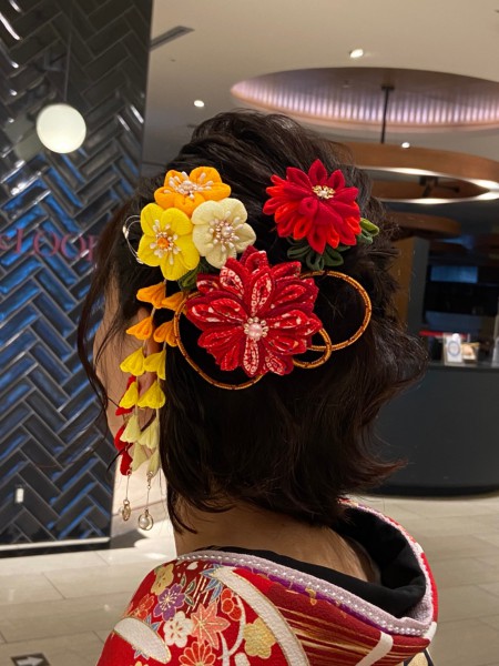 ふっくらとしたつまみ細工が、お着物にピッタリですね。