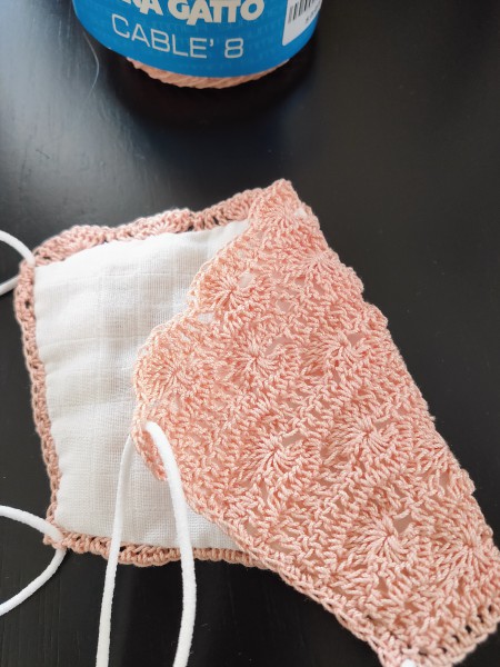 裏面はガーゼ縫いつけています。針は3号かぎ針。