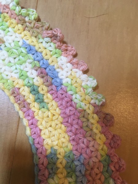 直接肌に当たると、ちょっとチクチクするので、近いうちに別の毛糸で編み直すかもしれません