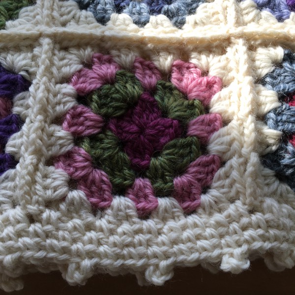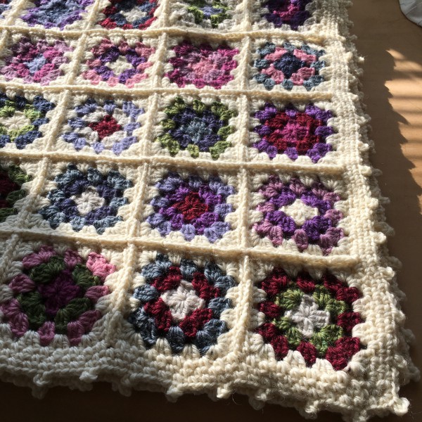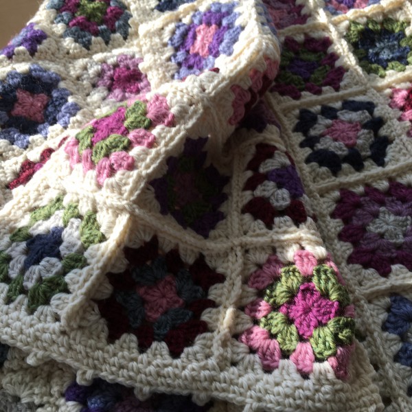 何色か買い、しりとりをするように作りました。周りを生成りにするとまとまるかな?