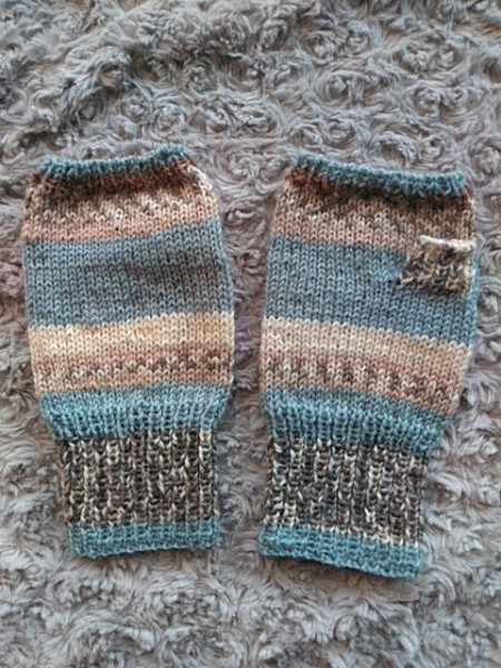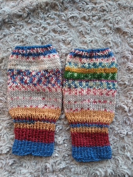 あまり毛糸を使いました。洗濯機で洗える毛糸で指出し手袋。