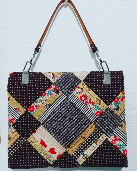 YouTubeで見たA4サイズのかばんを作ってみました。今回初めてくるみボタンを作りましたが、とても楽しかったです。