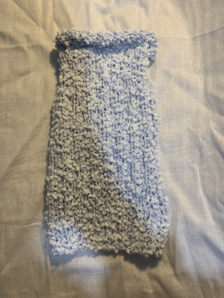 | トイプードルの愛犬用に作りました。 サイズが思ったよりもだいぶ小さくなってしまいました… 大きくして再チャレンジします。 特徴はメリヤス編みのくるんとした襟があるところです。 2×1のリブで作ったけど普通に1×1もしくは2×2でよかったかなと思っています。 あと、お尻部分は真っ直ぐだと寂しいのでかぎ針とかで付け足した方が可愛く仕上がりそうです。 |