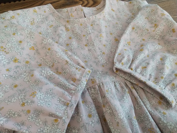 | くすみピンクの小花柄で、長女にパフスリーブのチュニックを作りました。 七分袖で、重ね着をすれば秋~春まで着られそうです。 初挑戦の行程がいろいろありましたが、満足いくものができました。 |