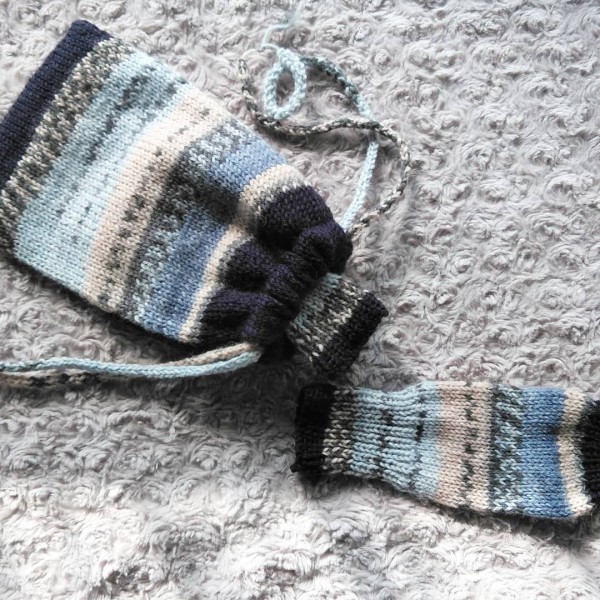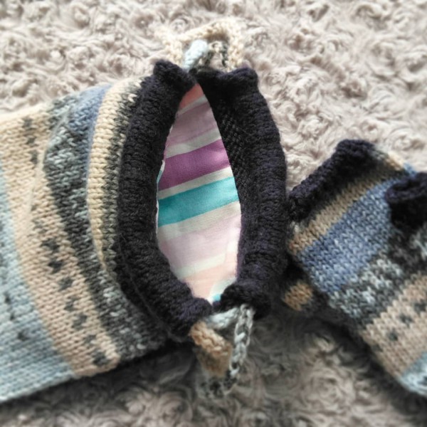 もったいないので巾着にしました。コードを編むのが楽しかったです。