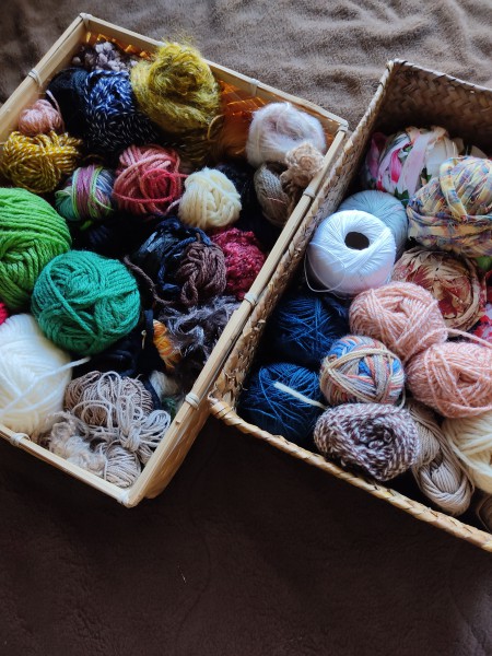 余り毛糸を片付けようとひたすら編みました。でもまだまだ残ってます…