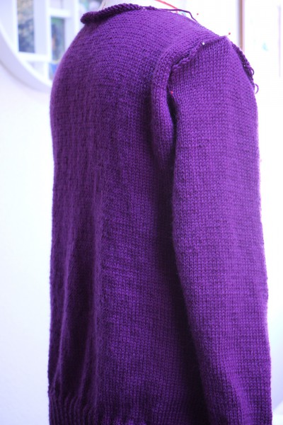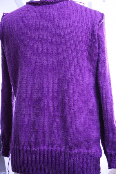 後ろ見頃と両袖を編み上げました。