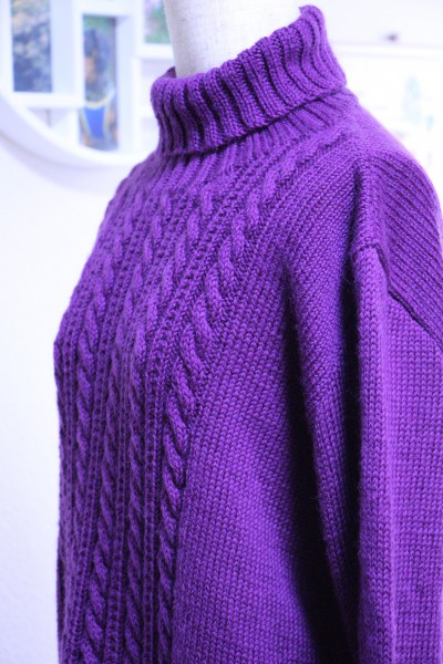 | ベーシックなデザインのケーブルプルオーバーです。 デザインは母に選んでもらい、 お色は母の大好きな紫色をチョイスしました。 とても喜んでもらえたので、うれしかったです~(^O^) |