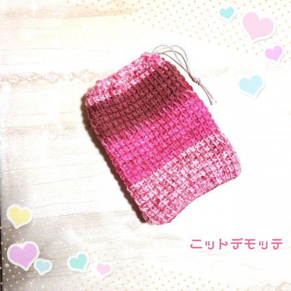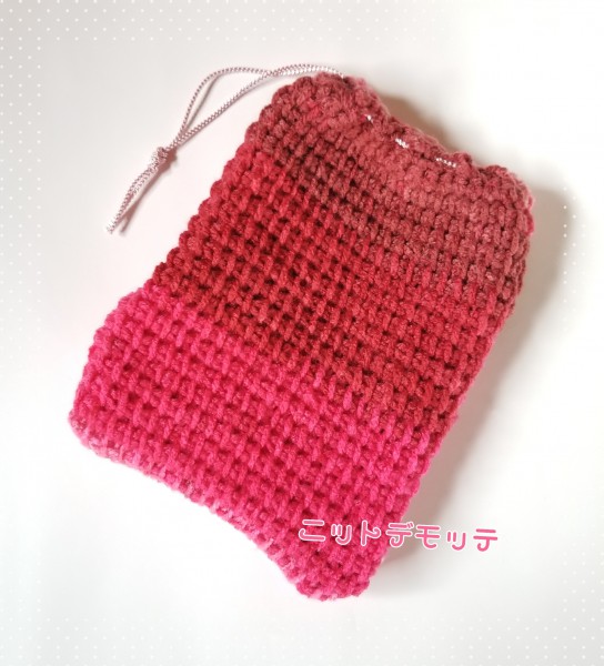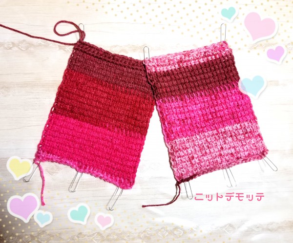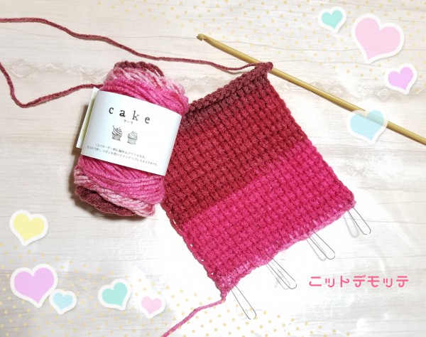 ピンクのグラデーションの段染め糸のおかげで可愛く出来ました。