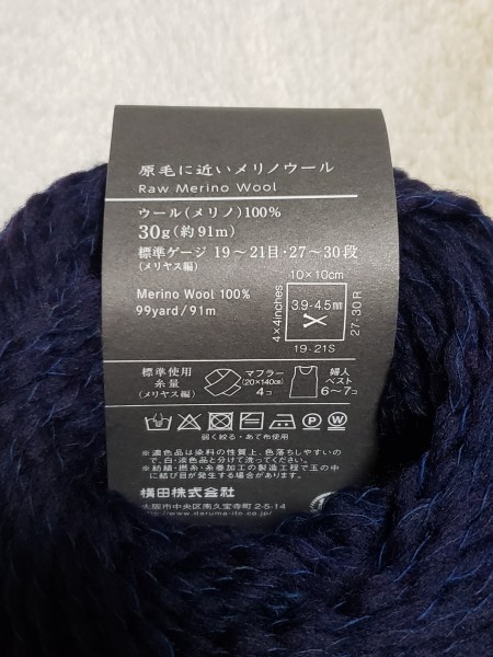 | 使用糸 | 原毛に近いメリノウールColorNO.14(濃紺)・NO.7(ピーコックブルー) /Daruma 横田 |